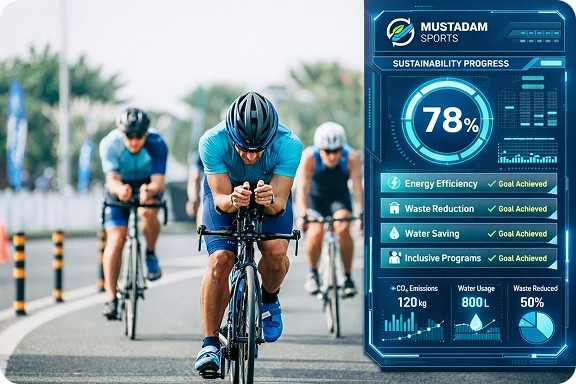 No. The page positions Mustadam Sports as a journey from baseline compliance to verified leadership. The goal is not only to reduce negative impacts, but also to create measurable positive impact over time.