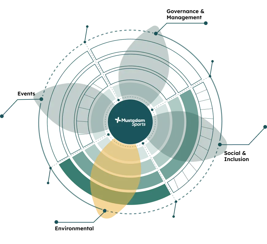 The process starts by analysing your current ESG performance with the Mustadam Sports Maturity Model. Based on the identified gaps, you develop a clear strategy, define goals and KPIs, implement actions and track progress over time – all in one online tool.
